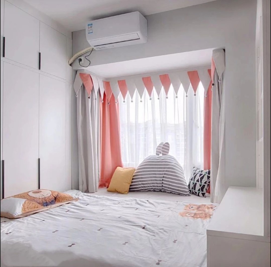 隔出来的儿童房,睡眠区做榻榻米。超大的睡床,奶奶或者外婆来了之后也能和宝宝一起睡,榻榻米本身具有收纳功能,可以满足一家三口的日常收纳需求。别看房间不大, 但卧室还设计了到顶大衣柜和孩子的学习区。可以说是麻雀虽小五脏俱全!